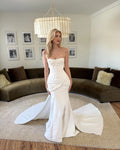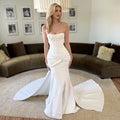 Popular Strapless Pleat Satin Sheath Wedding Dresses With Long Rubbon Custom Made 2026 Vestido De Noival