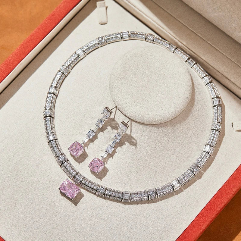 Pure 925 Sterling Silver Jewelry For Women Big Gemstone Wedding Jewelry Set High Quality Earrings Necklace Party Fine Jewelry
