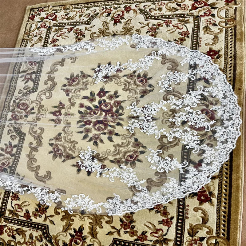 Real Photos Long Lace Appliques Wedding Veil White Ivory Cathedral 1 Layer Bridal Veil Bride Veil Wedding Accessories