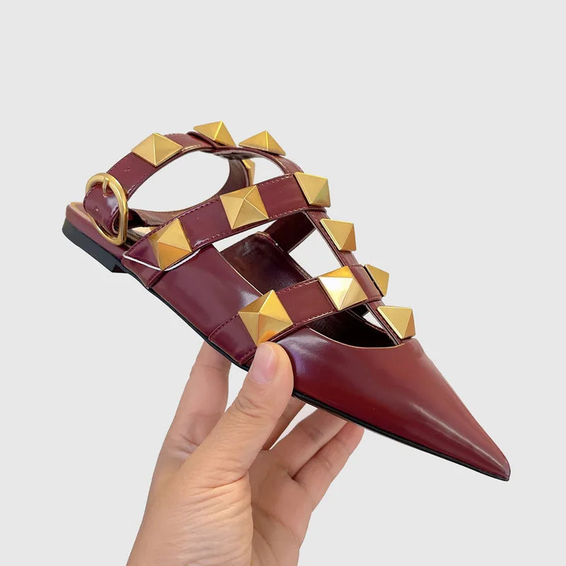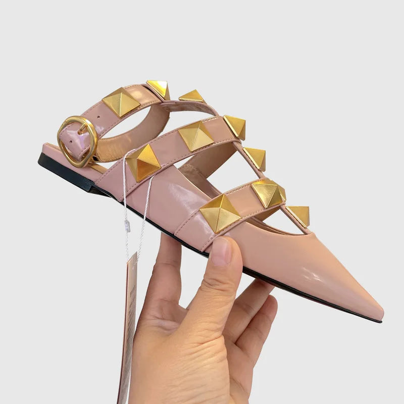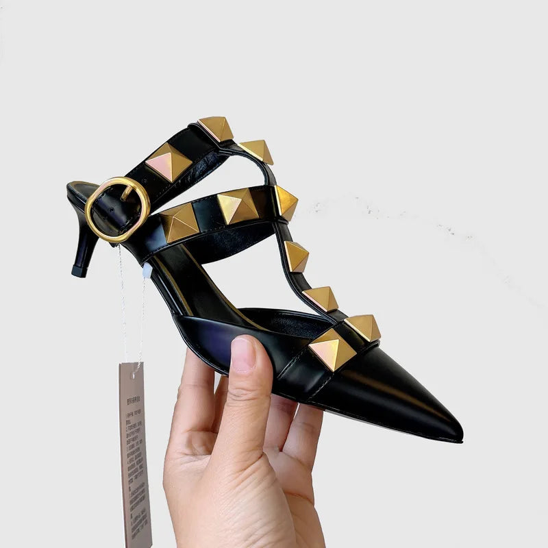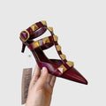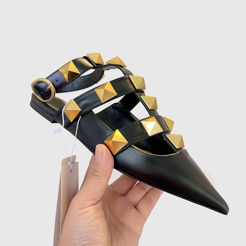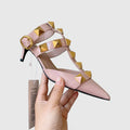 Rivet pointed flat sandals fashion 2025 new rivet low heel shoes women's pointed thin high-heeled sandals sexy