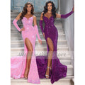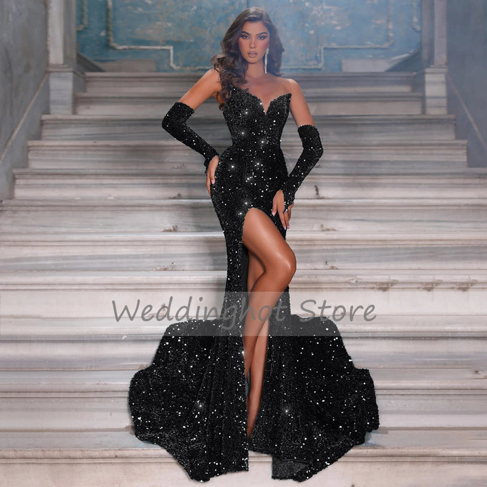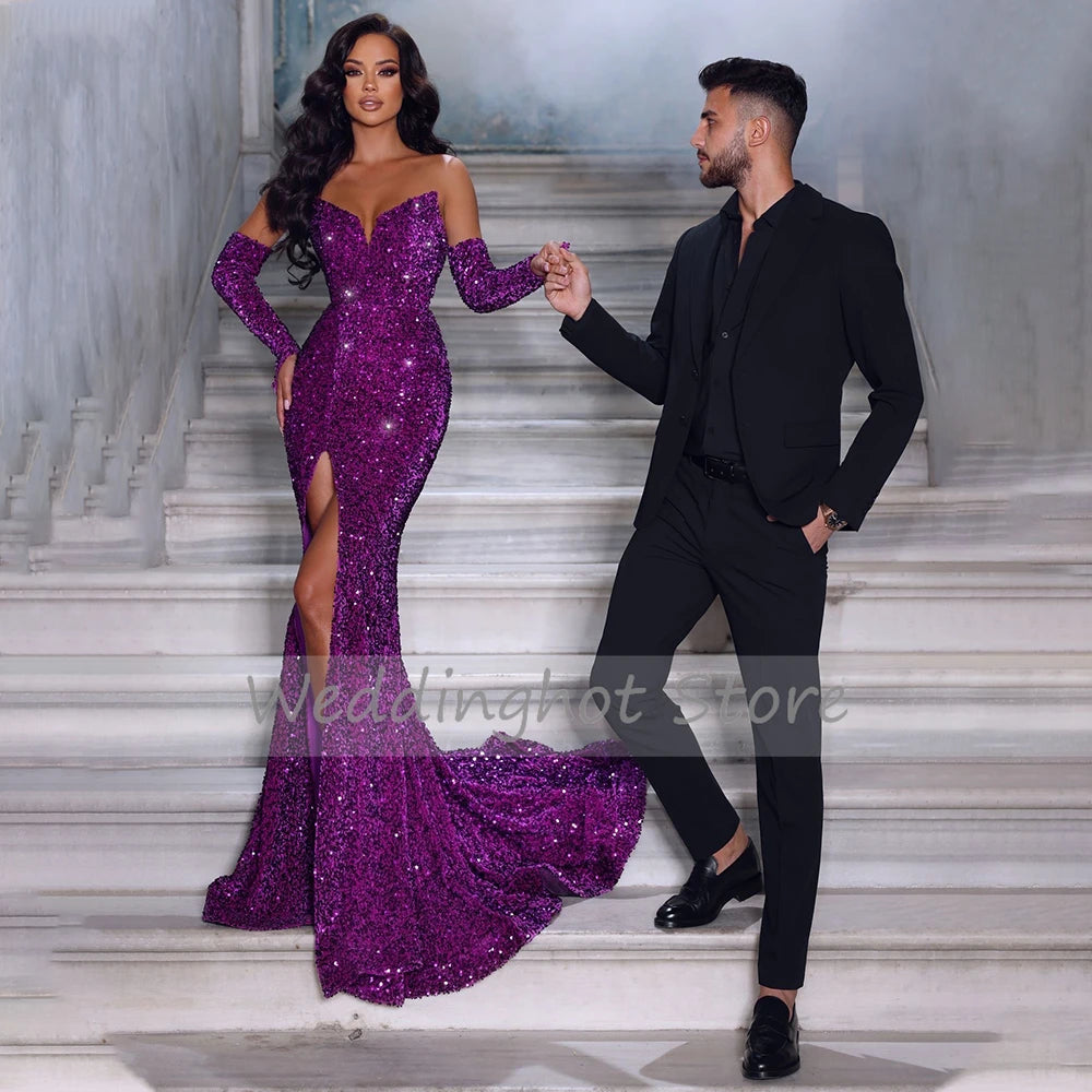 Royal Blue Evening Dresses for Women Sequin V Neck Side Slit Sexy Gown Long Mermaid Backless Sparkly Formal Party Dress