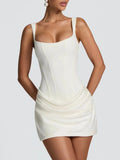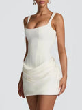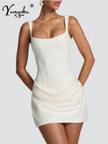 Sexy backless slip folds white summer dress women elegant birthday party dresses woman bodycon evening short dresses vestidos