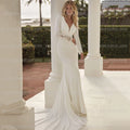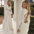Sexy Elegant Wedding Dresses Woman's Mermaid Long Sleeve Train Sexy V Neck Backless Satin Bride Gowns Vestidos Novia Customized