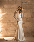 Luxury Off-Shoulder Sparkle Satin Wedding Dress – Long Sleeve Mermaid Bridal Gown with Train | Maison Bridal