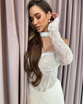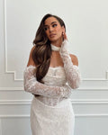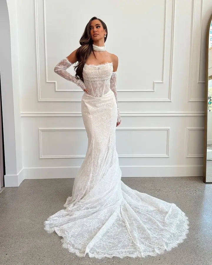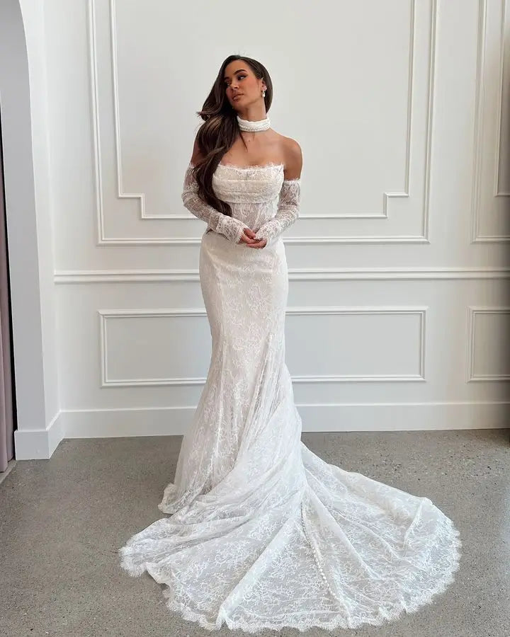 Sexy Long Sleeves Full Lace Pleat Mermaid Wedding Dresses Sweep Train Custom Made Bridal Grown Vestido De Noival