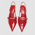 Sexy Pointed Toe Sandals Women Summer Red Thin High Heels for Women Patent Leather Back Trip Strap Mules Wedding Women Pumps