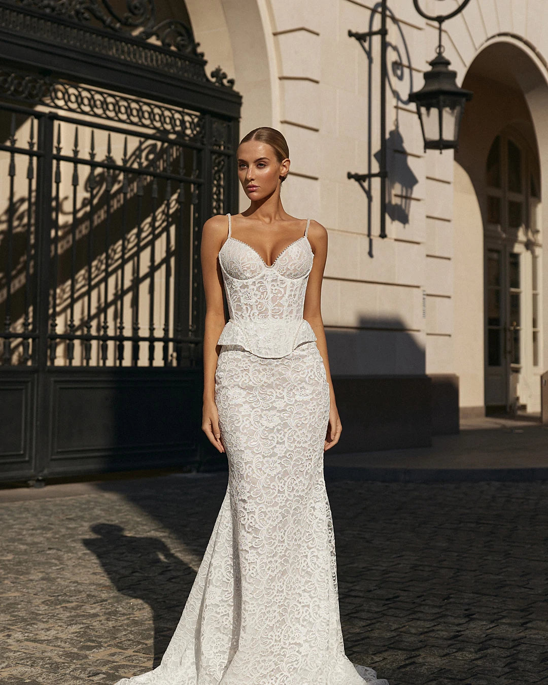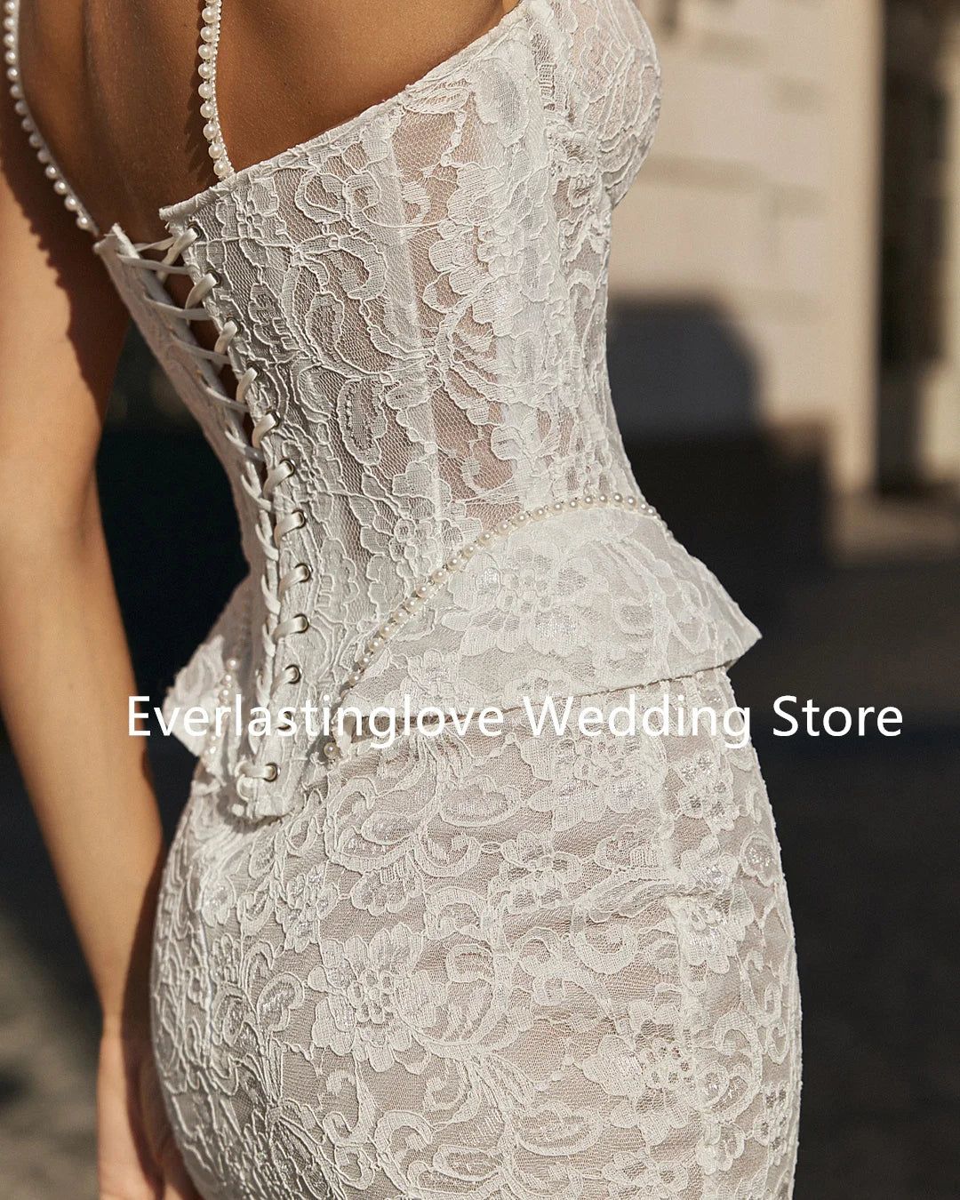 Sexy Two Straps V-neck Full Lace Shetah Two Piece Evening Dresses Custom Made 2026 Vestido De Noival