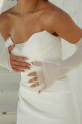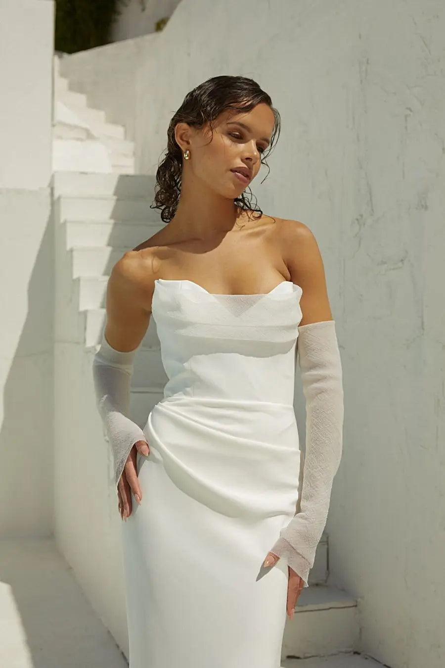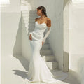 Sexy V-neck Pleat Soft Satin Sheat/Mermaid Wedding Dresses Custom Made Bridal Grown Detachable Long Sleeves Vestido De Noival