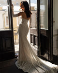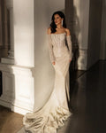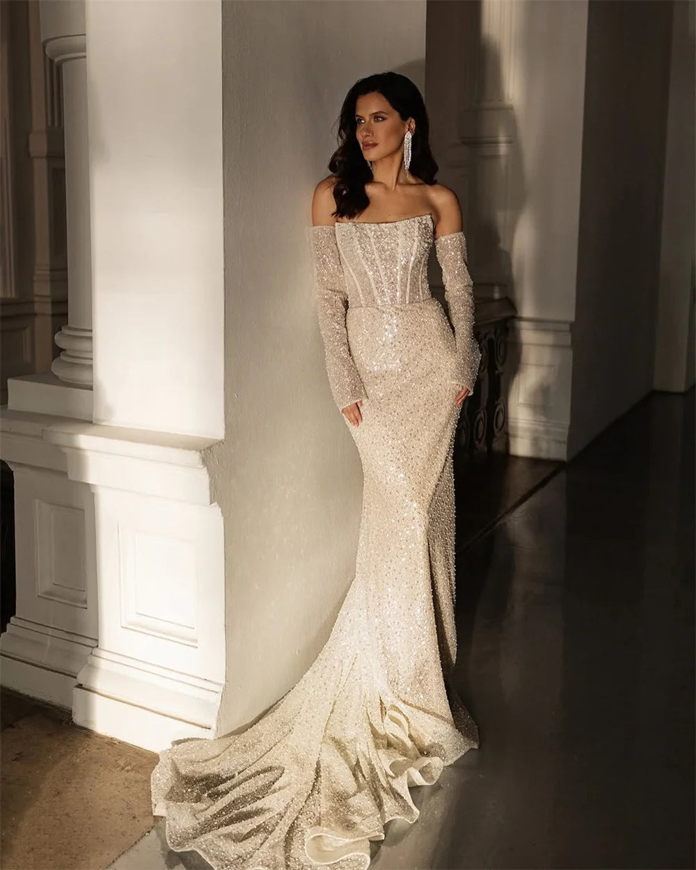 Shiny Beaded Sequined Detachable Long Sleeves Scoop Neckline Sheath/Mermaid Wedding Dresses Sweep Train Custom Made 2026 Vestido