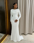 Radiate sophistication and timeless elegance in our Long Sleeve Sparkly Satin Wedding Dress, designed for brides who desire refined luxury and graceful presence.