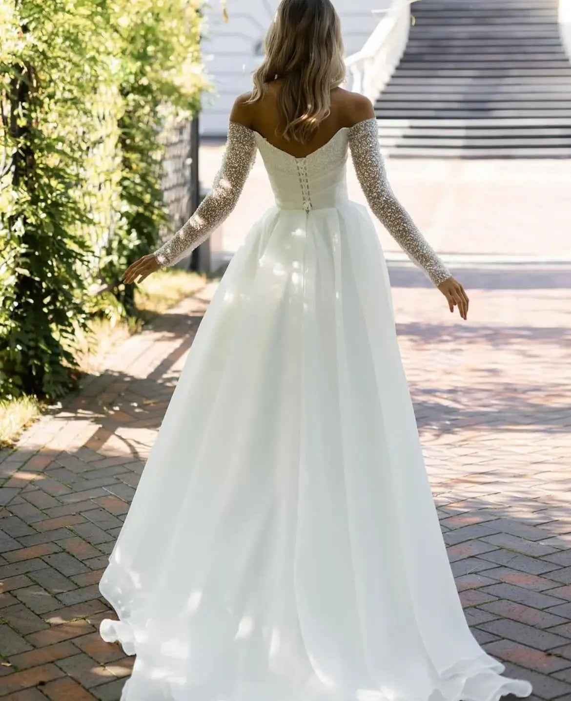 Shiny Beades Sequined Long Sleeves Pleat Sweetahrt Organza A Line Wedding Dresses Corset Back Bridal Grown 2026 Rode De Morrie