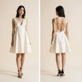 Short Satin Wedding Dress – Elegant V-Neck Backless Bridal Mini Gown for Civil Ceremony | Maison Bridal