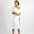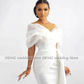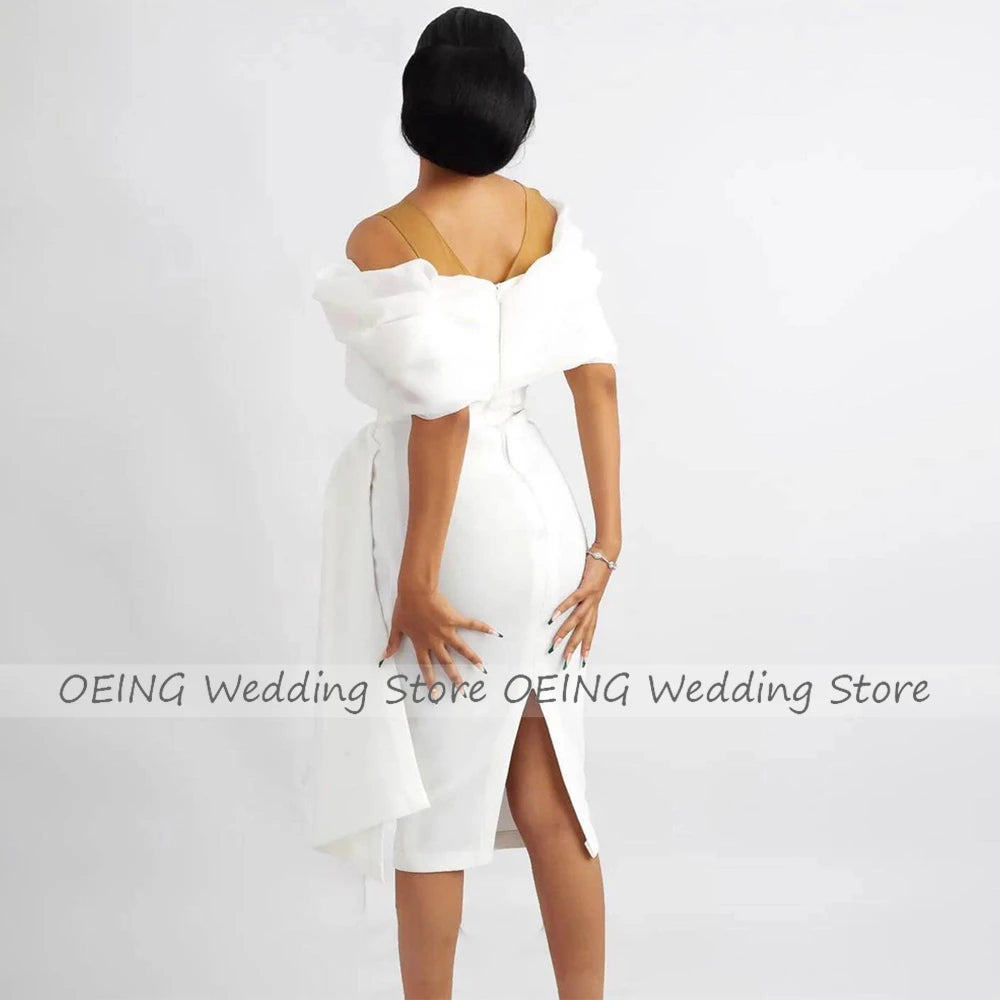Short Wedding Dress White Off the Shoulder Sheath/Column Wedding Gown for Women 2023 Bride Knee Length Beaded Simple Bridal Gown