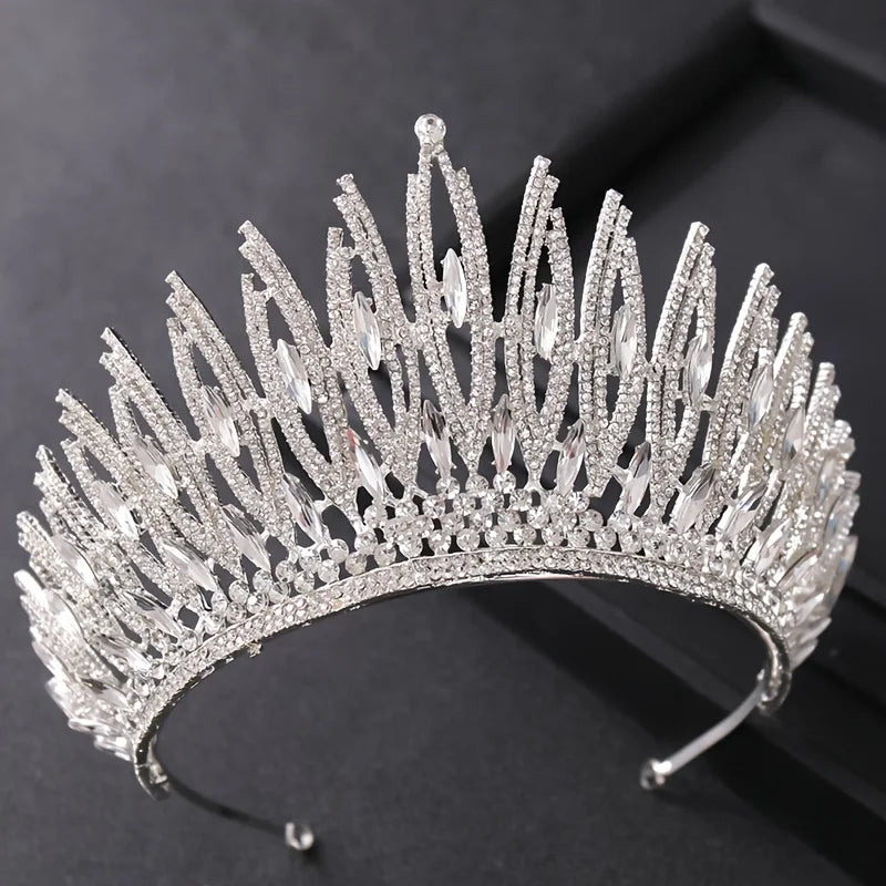 Silver Color Crystal Queen Big Crown Tiara Rhinestone Wedding Tiaras Women Pageant Prom Crowns Bridal Hair Accessories Jewelry