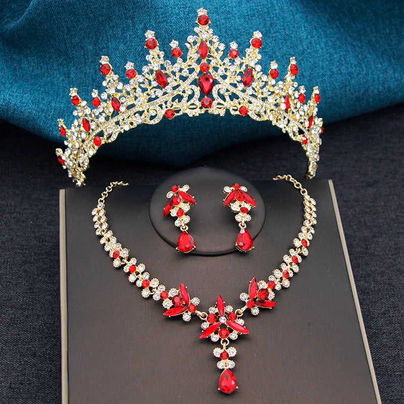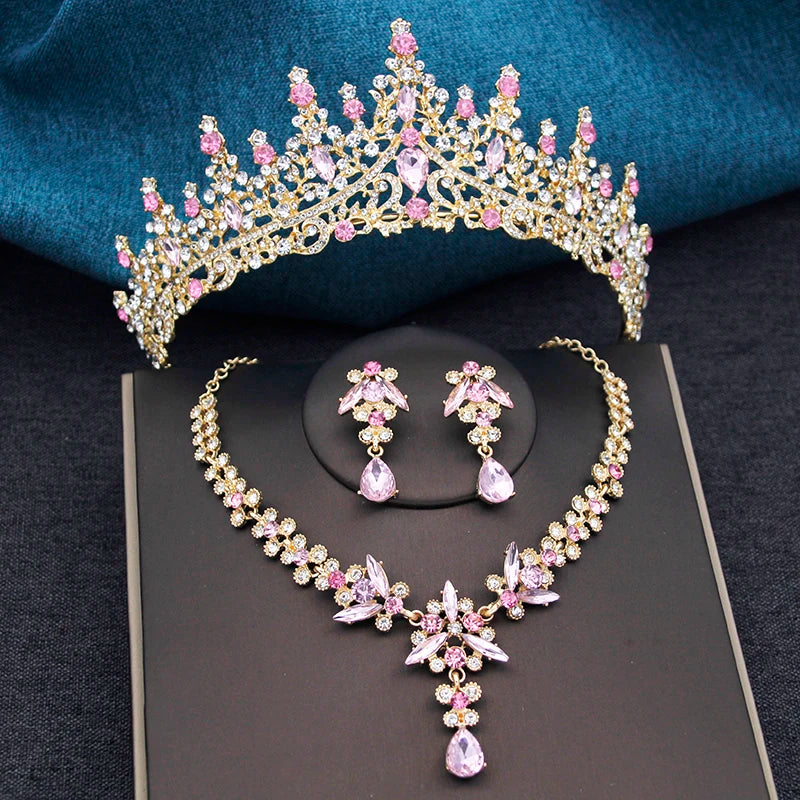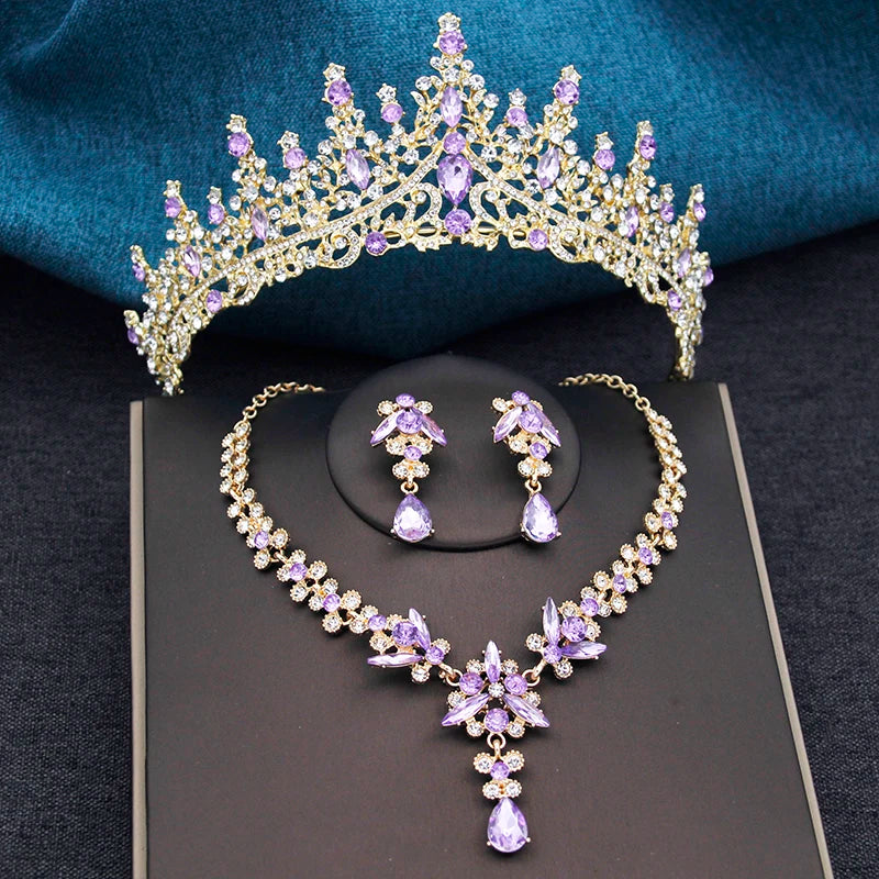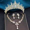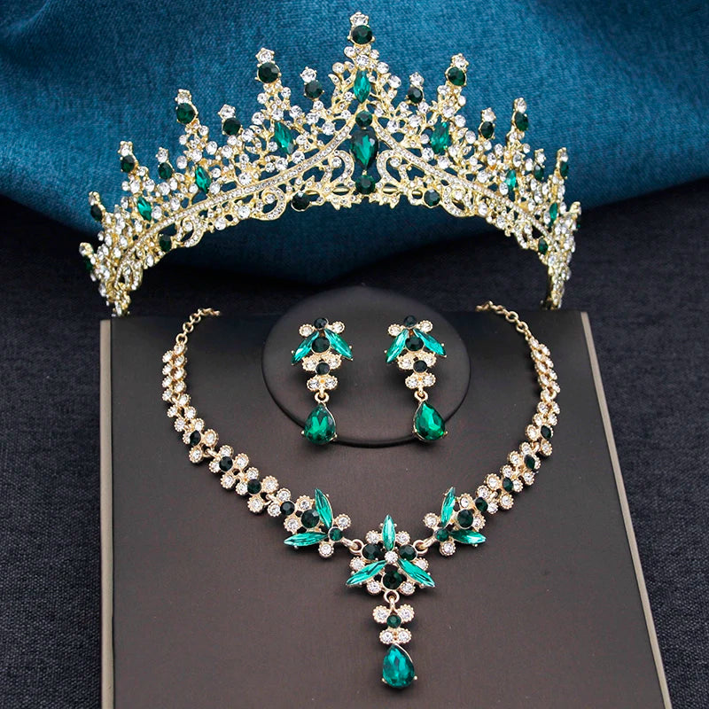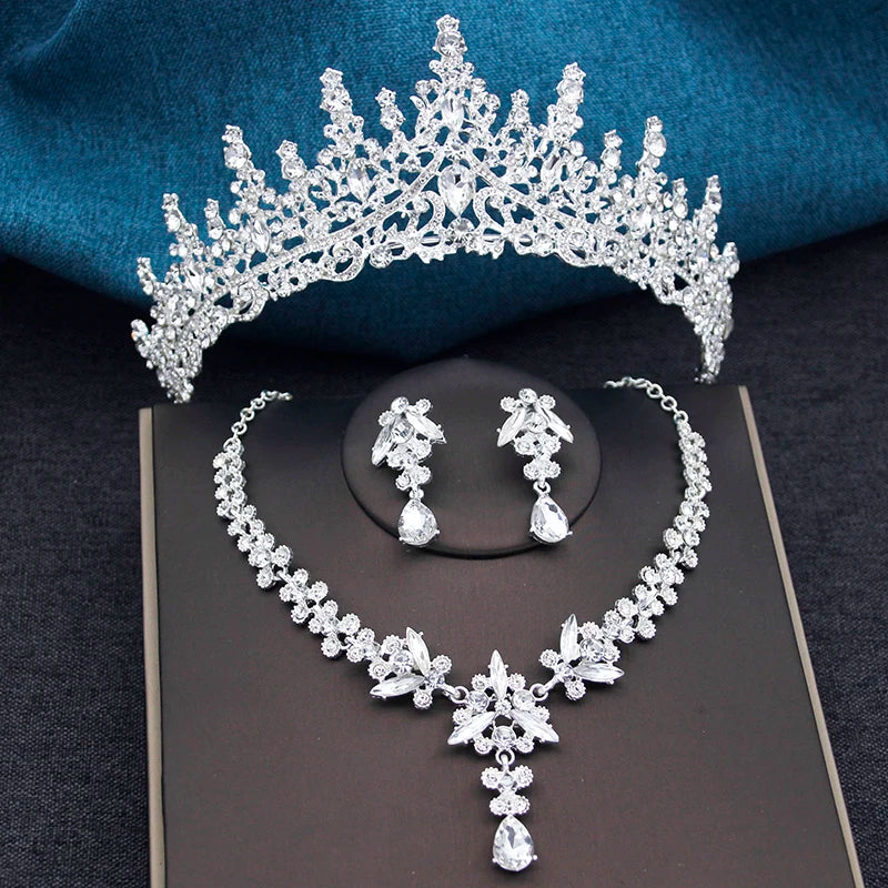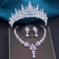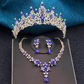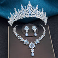 Silver Color Opal Blue Wedding Crown Jewelry sets for Women Tiaras and Earrings necklace set Princess Girls Prom Gifts Accessory