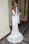 Simple Pleat Scoop Neckline Satin Sheath/Mermaid Wedding Dresses With Long Scalf Custom Made Vestido De Noival No Gloves