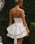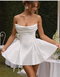 Simple Pleat Strapless Short/Mini Satin A Line Wedding Dresses Custom Made Bridal Grown 2025 Vestido De Noival