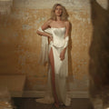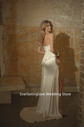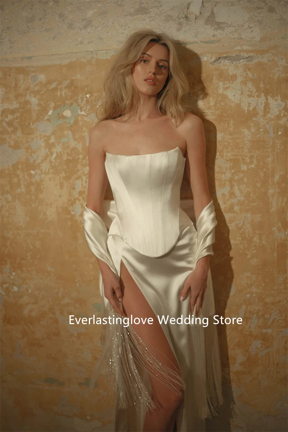 Simple Scoop Neckline Two piece Satin Bridal Grown Wedding Dresses Side Slit With Long Scalf Custom Made 2026 Vestido De Noival
