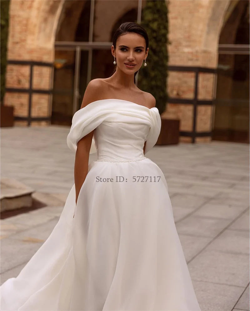 Simple Strapless A-Line Wedding Dresses Off the Shoulder Sleeveless Sweep Train Bridal Gowns Vestidos De Noiva