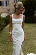 Simple Two Straps Pleat Fitted Silhouette Satin Wedding Dresses Custom Made Brial Grown 2026 Vestido De Noival