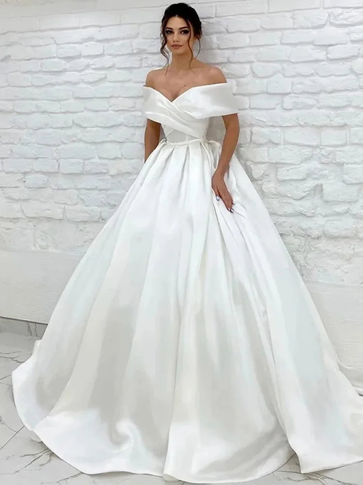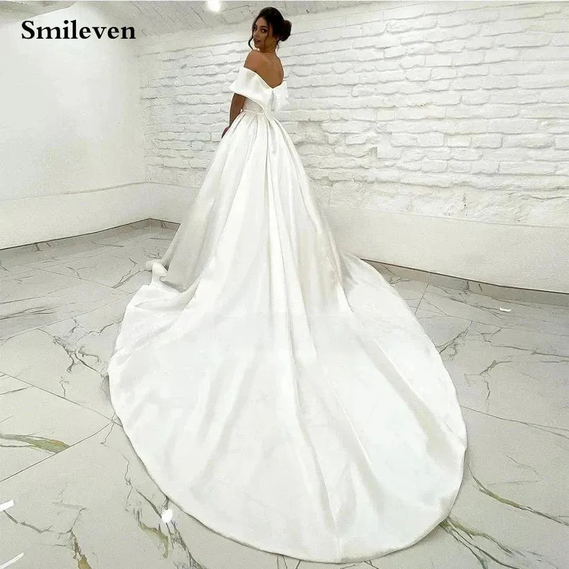 Smileven Elegant Satin Wedding Dress A line Off The Shoulder Bride Dresses Vestido de novia 2024 Customized