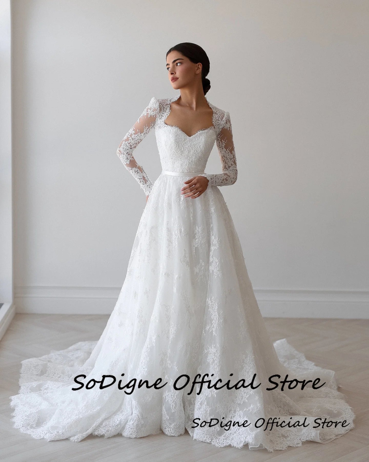 SoDigne A-line Lace Wedding Dress Sweetheart Full Sleeves Bride Dresses 2025 Long Bridal Gowns vestidos de novia Customized