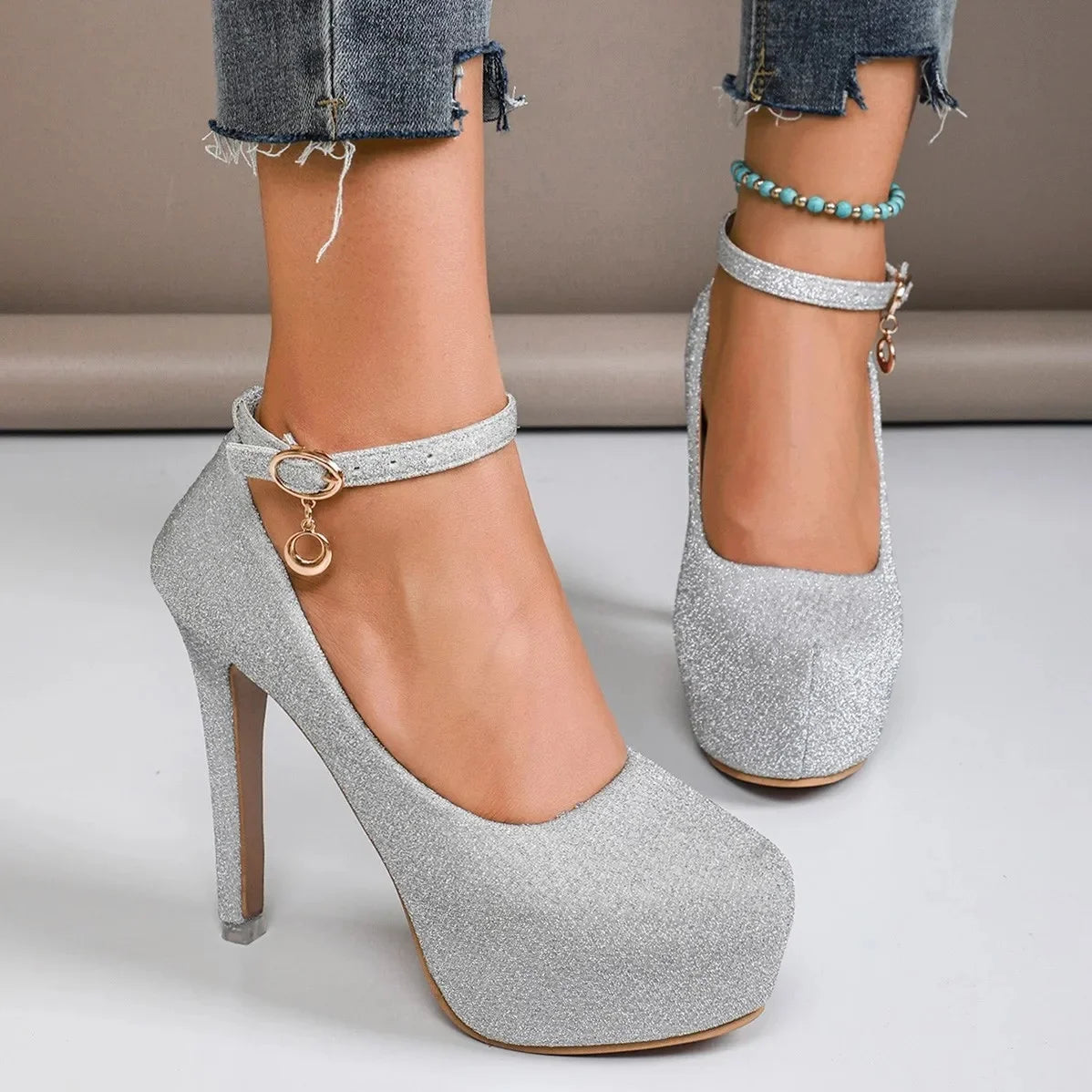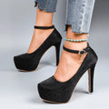 Spring Autumn New Style Waterproof Platform High Heels Thin Heel Silver Large Size Ultra High Heel Single Shoes for Women Show A