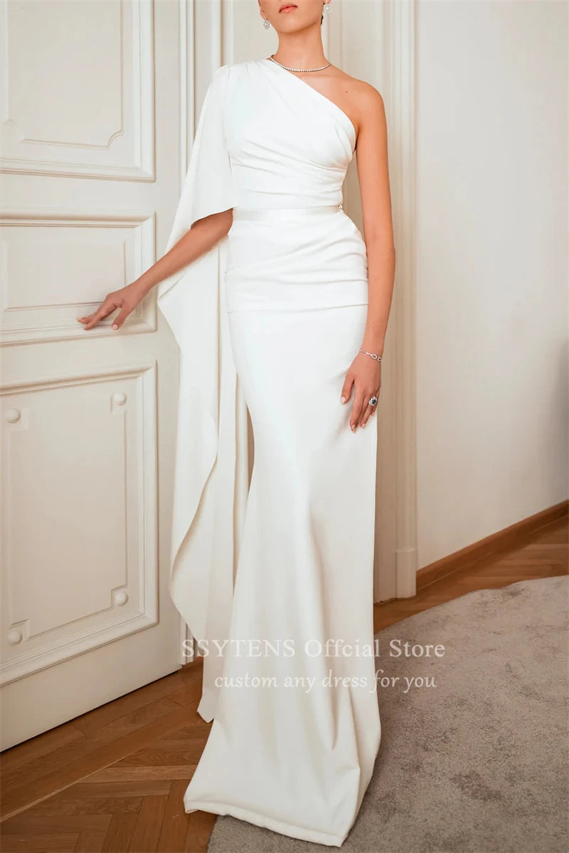 SSYTENS Elegant Mermaid Wedding Dresses One Shoulder Shawl Customized Bridal Gowns Floor Length Solid Custom Long Bride Dress
