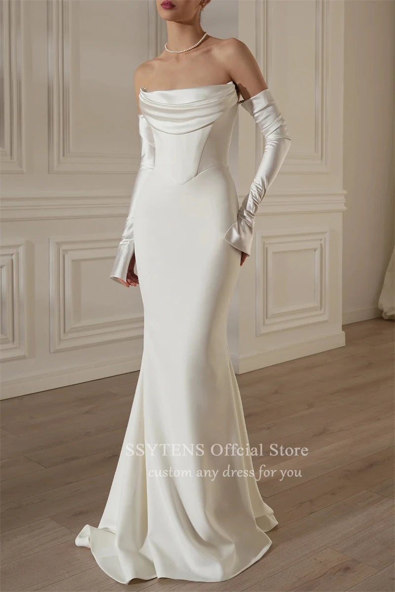 SSYTENS New Strapless Mermaid Wedding Dresses Satin Bride Gowns Floor Length Bridal Dress Detachable 2 in 1 Vestidos De Noiva