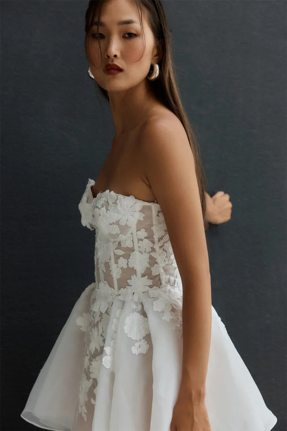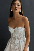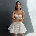 Strapless Short Wedding Dress for Wedding A-line Lace Appliqued Organza Sweetheart Neckline Elegant Wedding Gowns Bride Dresses