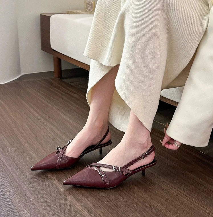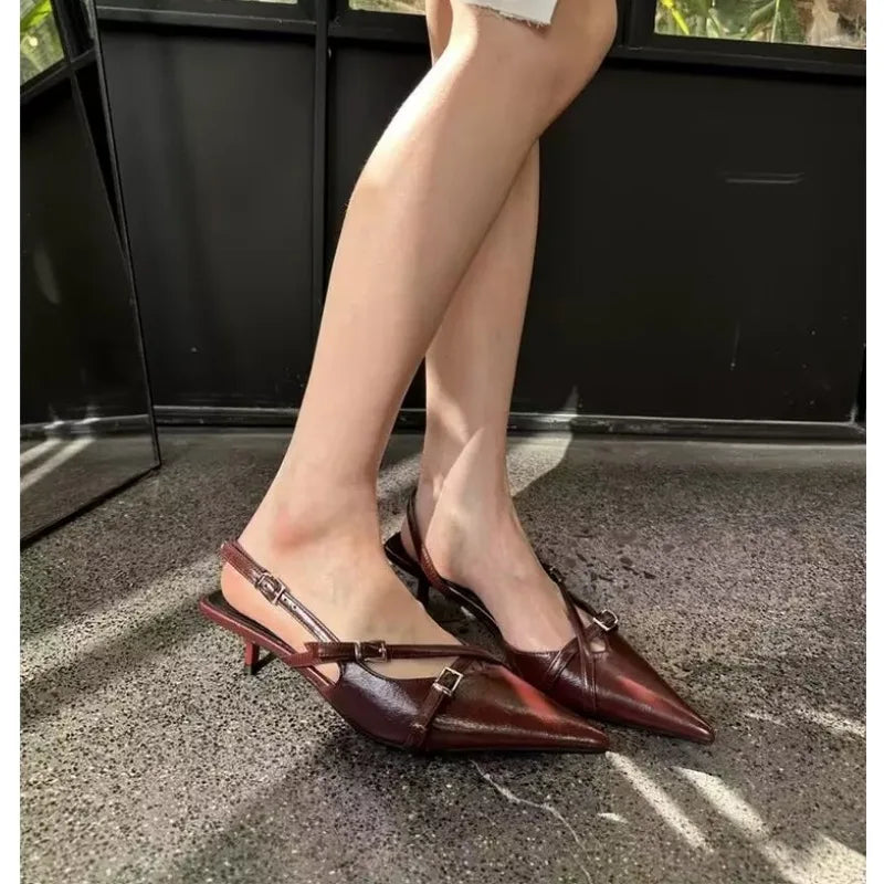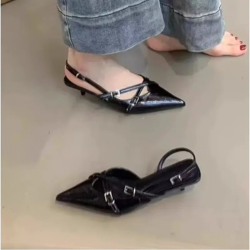 Summer fashion sexy pointed high heels casual shallow sandals elegant buckle decorative thin high heels black women's shoes