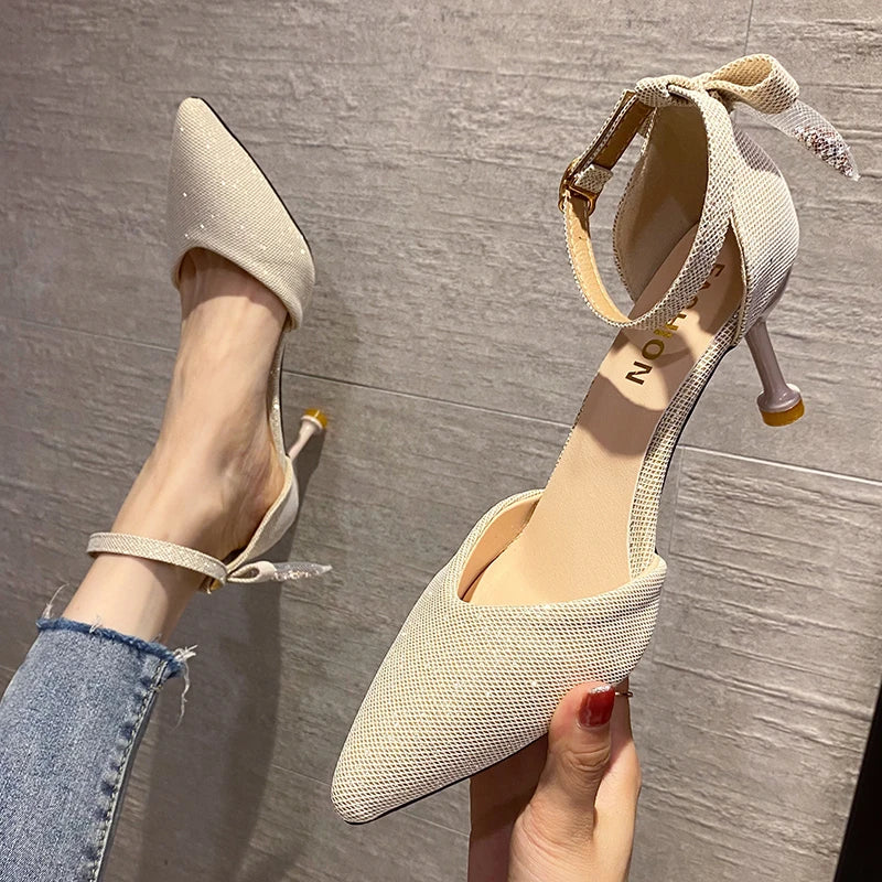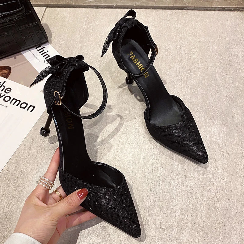 Summer New French Celebrity thin Heel Temperament Women's Shoes single Shoes Versatile Fashion bow Pointed high Heels 2025