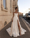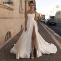 Toofgon A Line Satin Bride Wedding Dresses Customized Strapless High Slit Corset Back Bridal Gowns Formal Wedding Photo Shoot