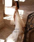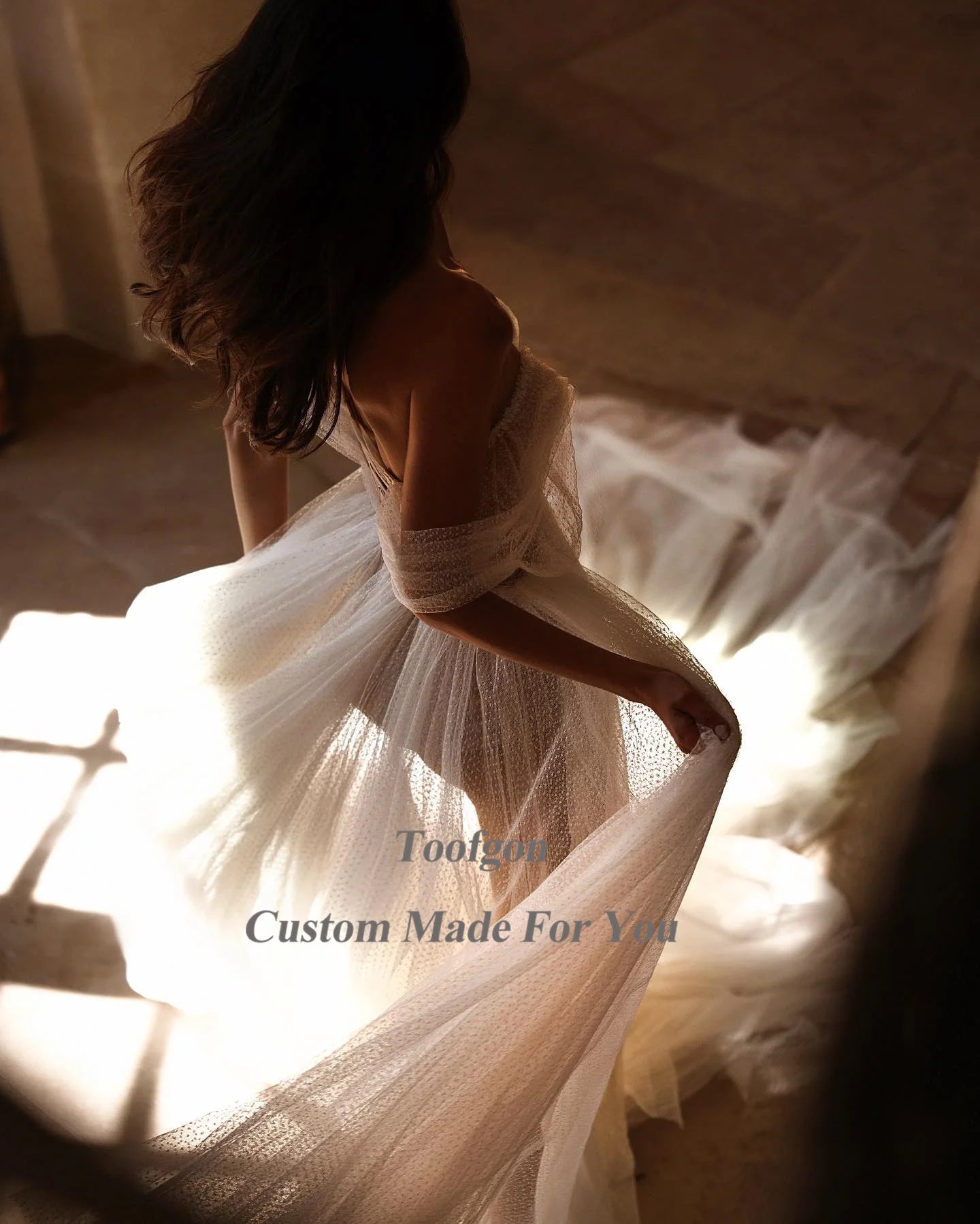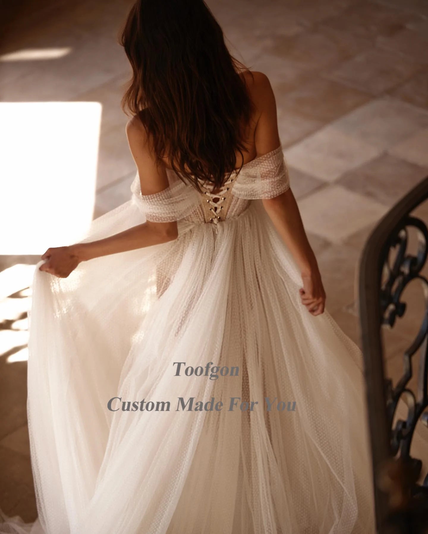 Toofgon Dotted Soft Tulle Boho Wedding Dresses Off The Shoulder Lace Up Slit Women Party Wedding Gowns Bridal Dress Customized