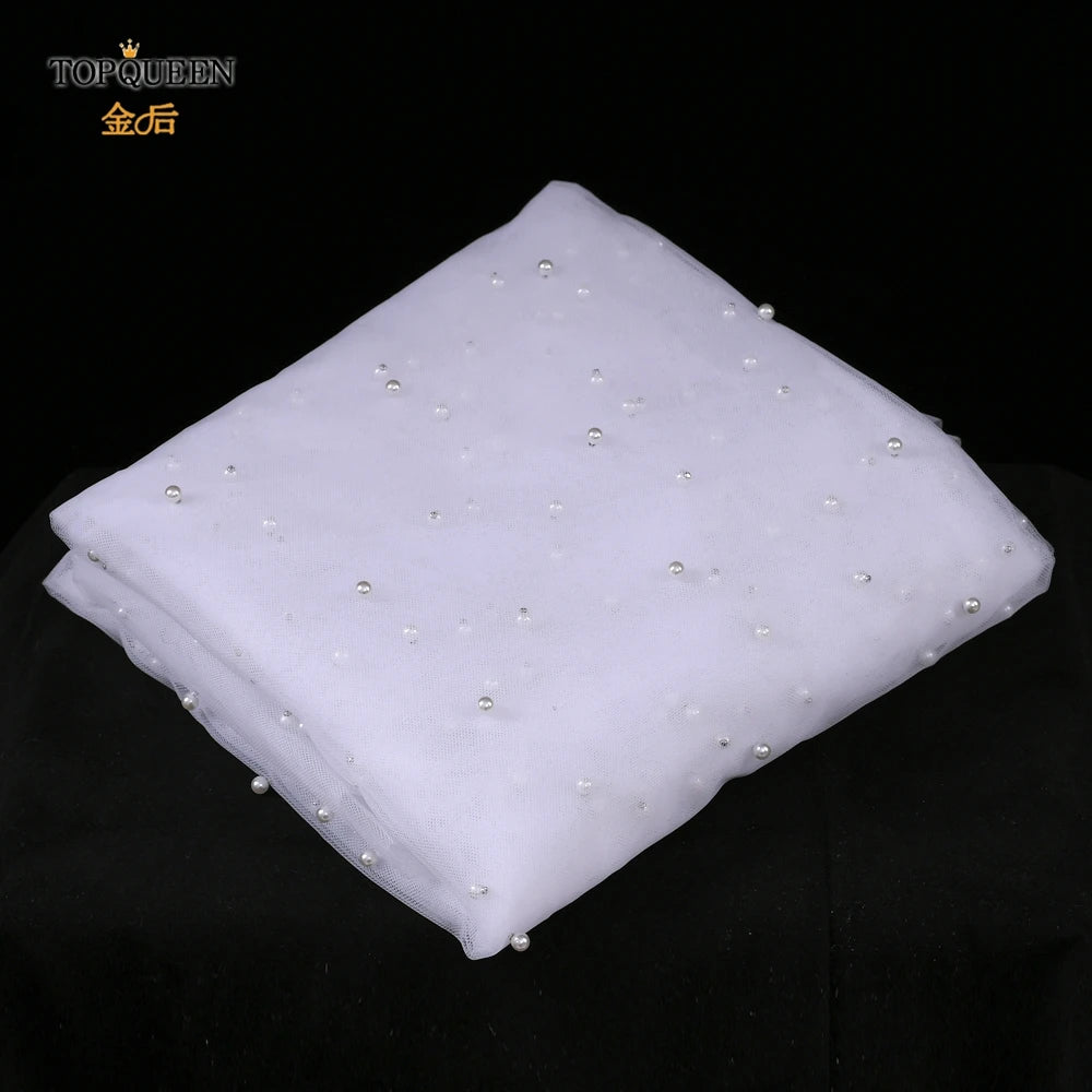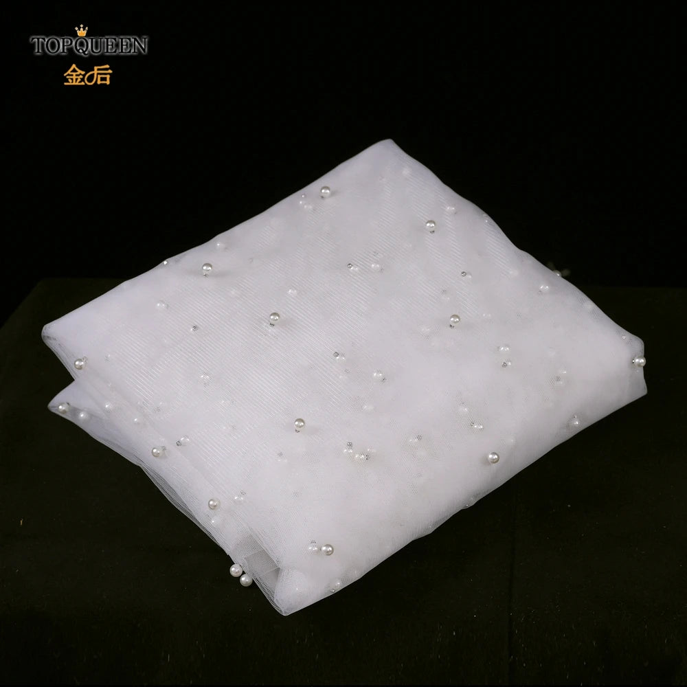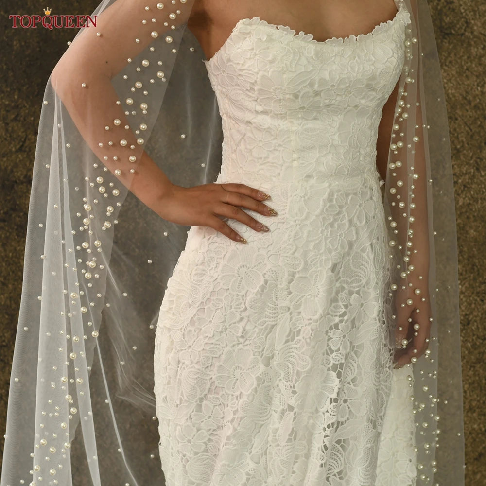 TOPQUEEN V66 Luxury Cathedral Pearl Wedding Veil No Comb Single Layer White Creamy 3m Bridal Veil Customizable