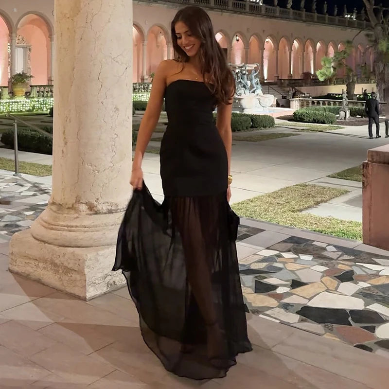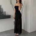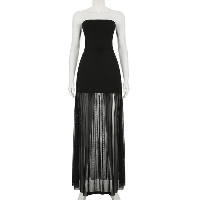 Tornova Sexy Strapless Split Long Dress For Women Mesh Splice Retro Elegant Party Dress Sleeveless Summer Vacation Dress Female