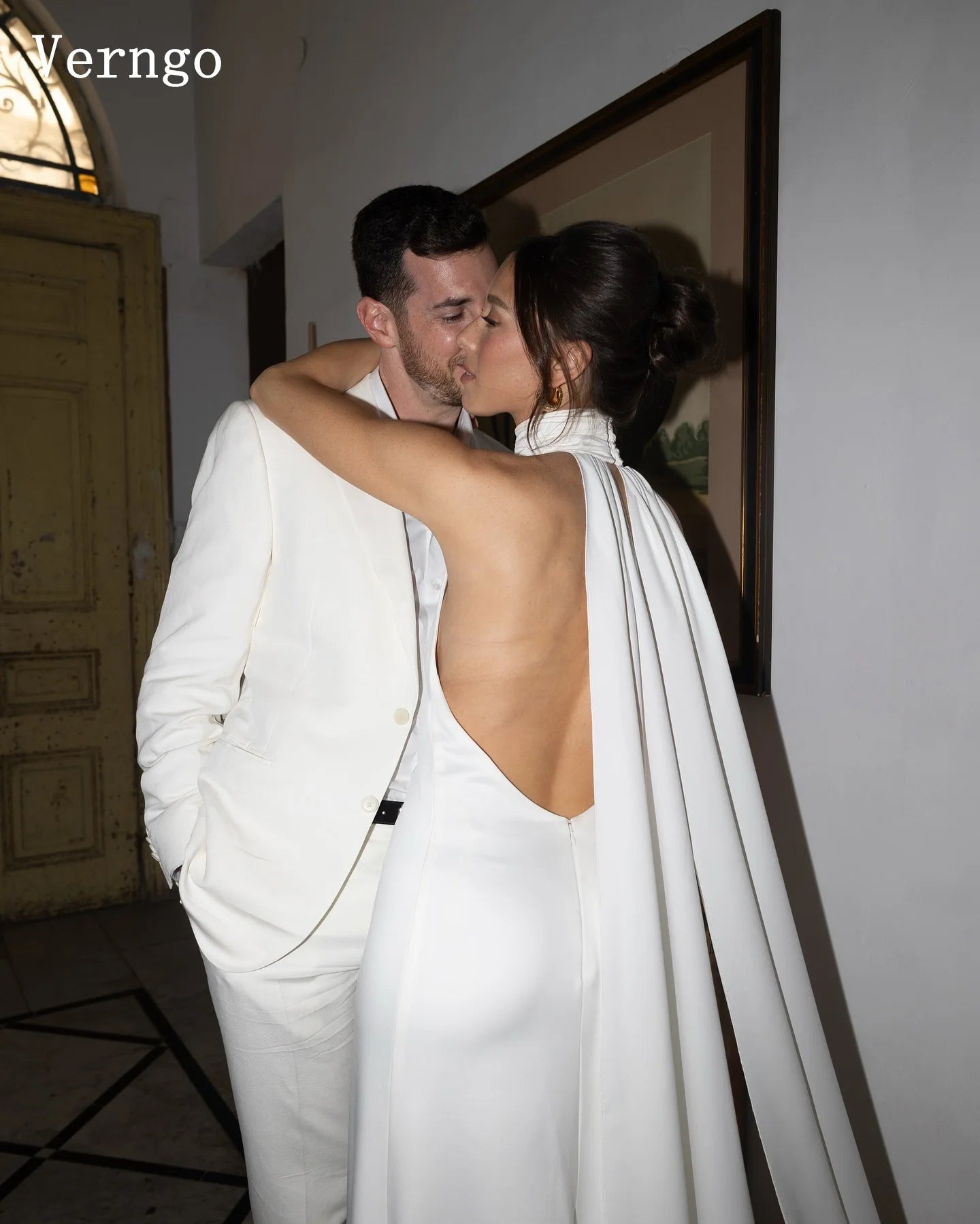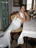 Verngo lvory Crepe Wedding Dress Halter Mermaid Sexy Bridal Gowns Women Backless Classy Bride Dress Customized
