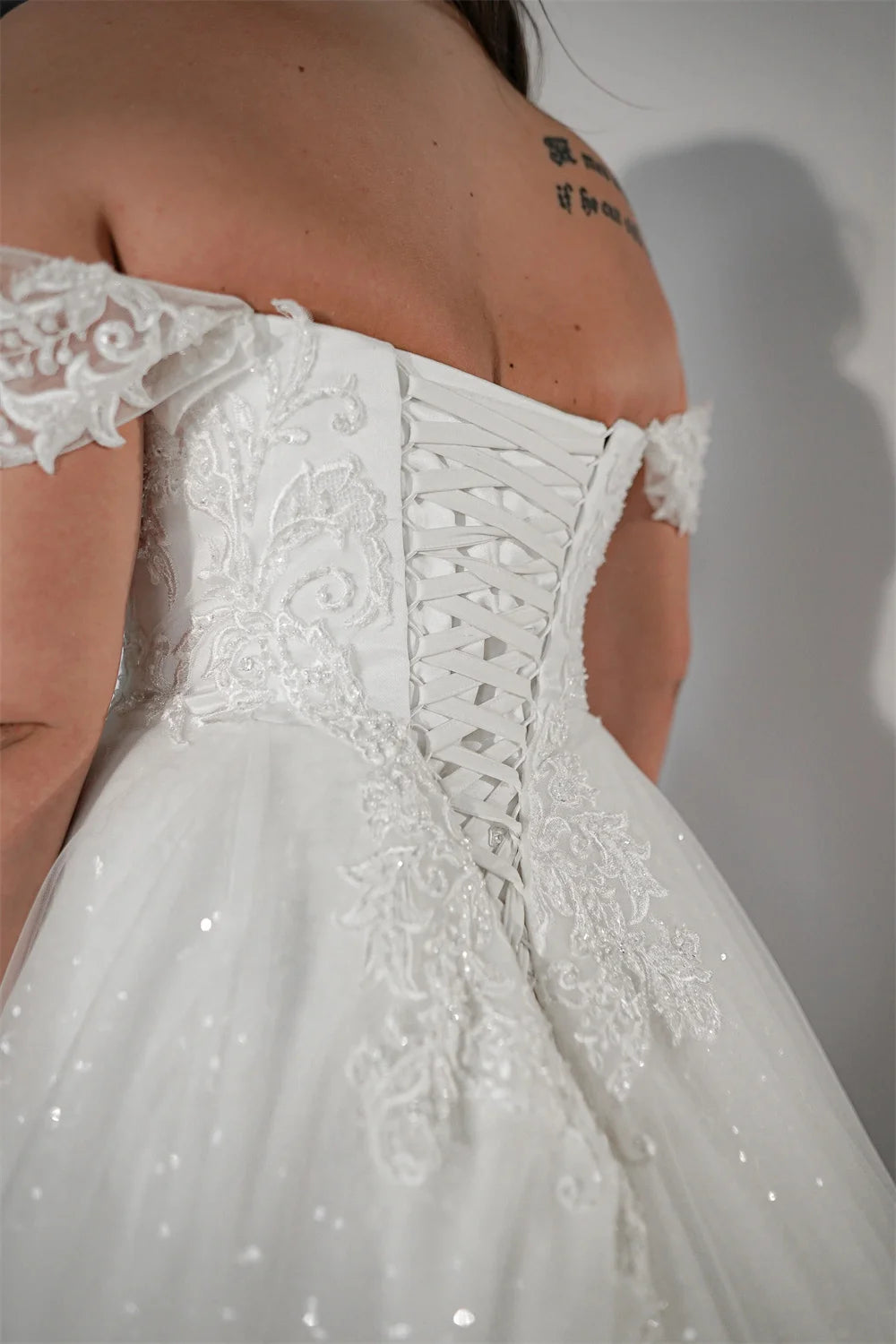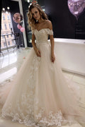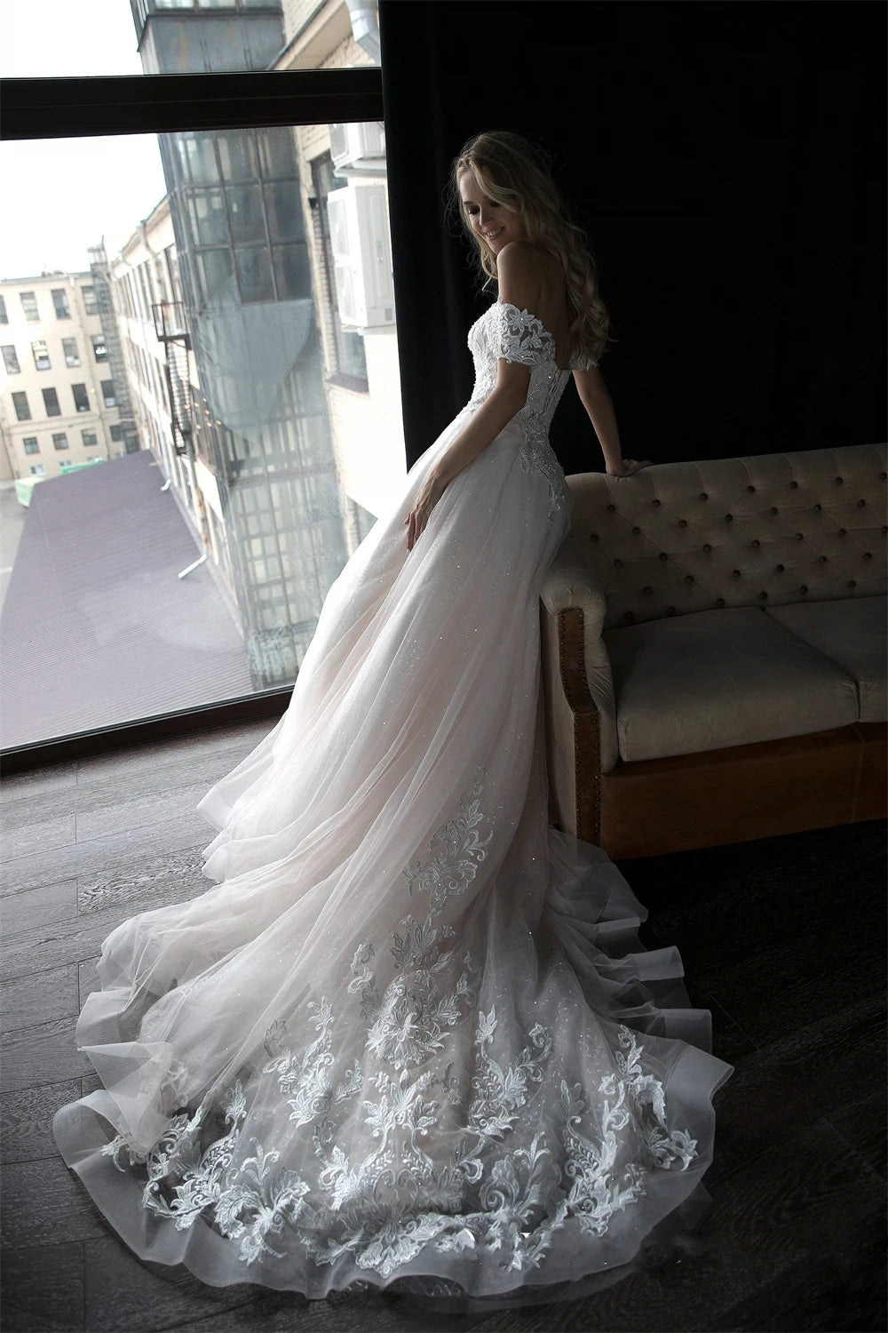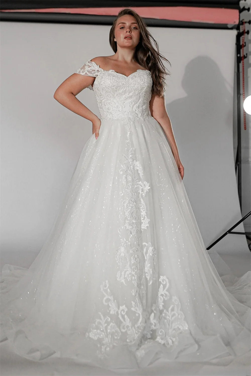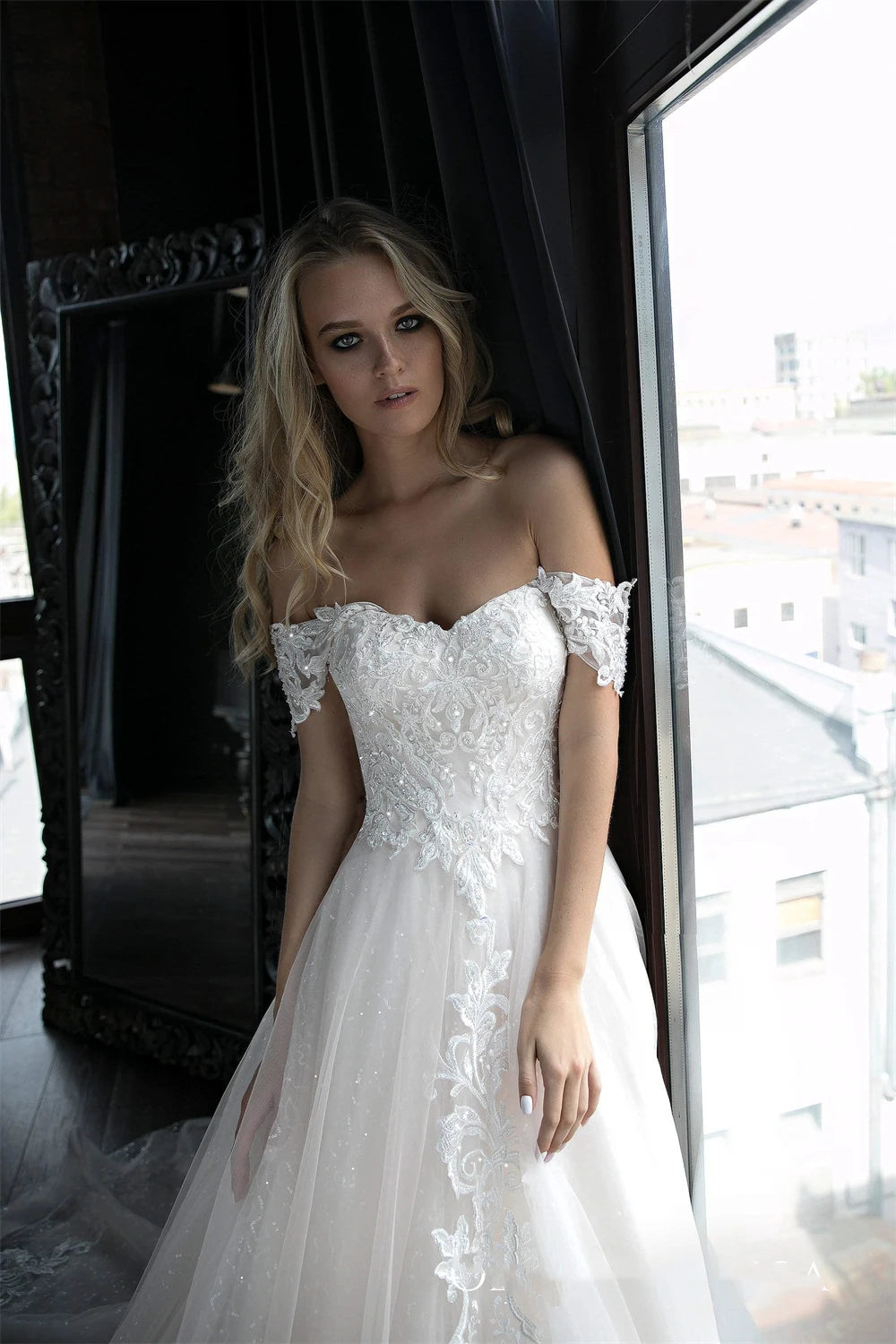 Vintage Off The Shoulder Sweetheart Lace Applique Bridal Grown A Line Wedding Dresses Sweep Train Custom Made Vestido De Noival