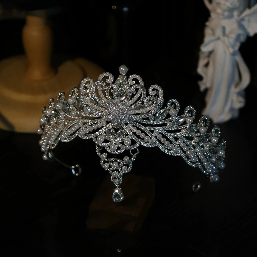 Wedding Hair Accessories Princess Queen Tiaras and Crowns Pearl Rhinestones Headpiece For Brides Women Headbands Bridal Jewelry