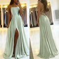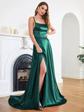 Wedding Prom Party Gowns Sleeveless A-line Long Satin Simple Spaghetti Straps Sexy Slit Vestidos Evening Dresses For Women