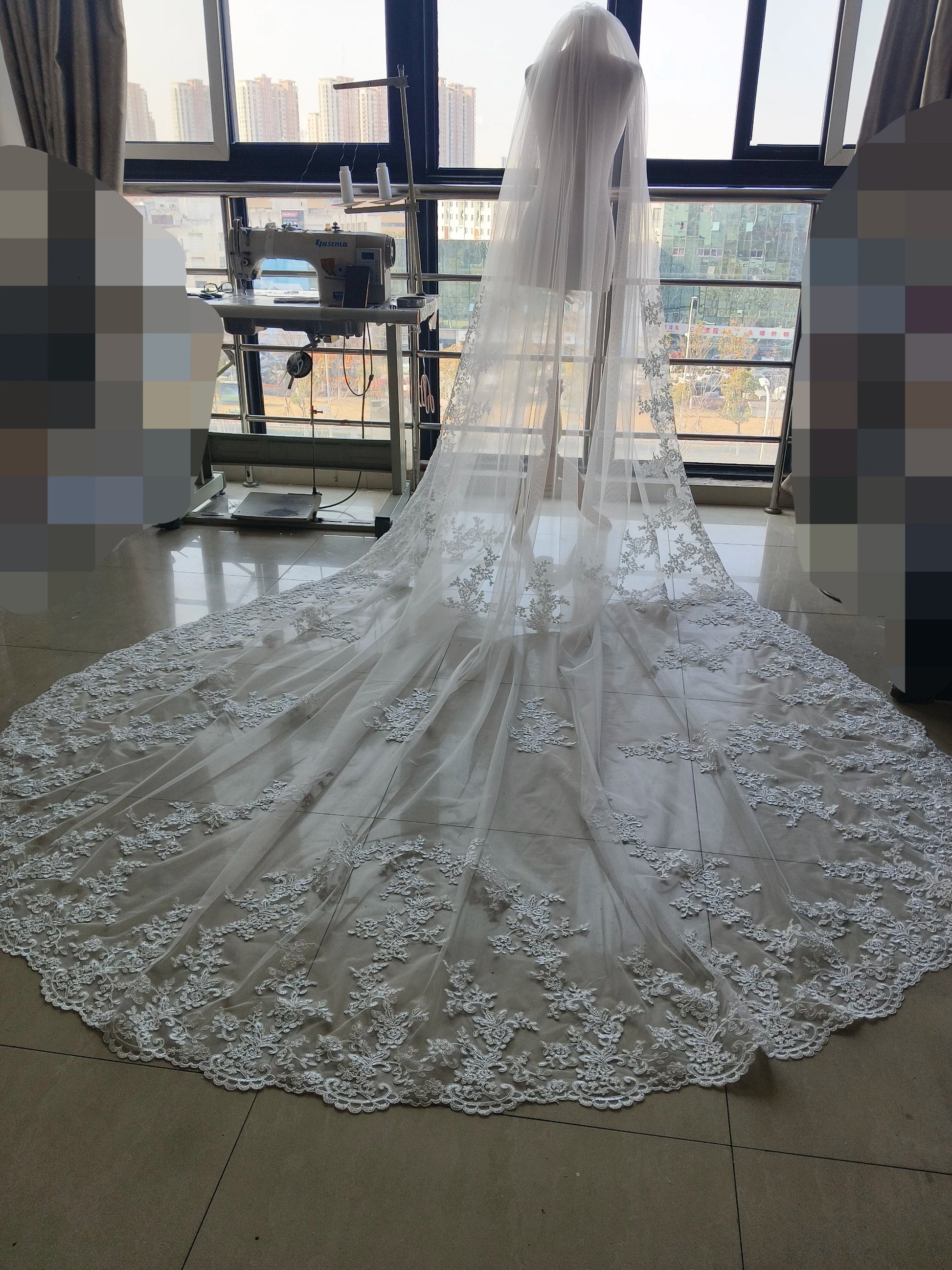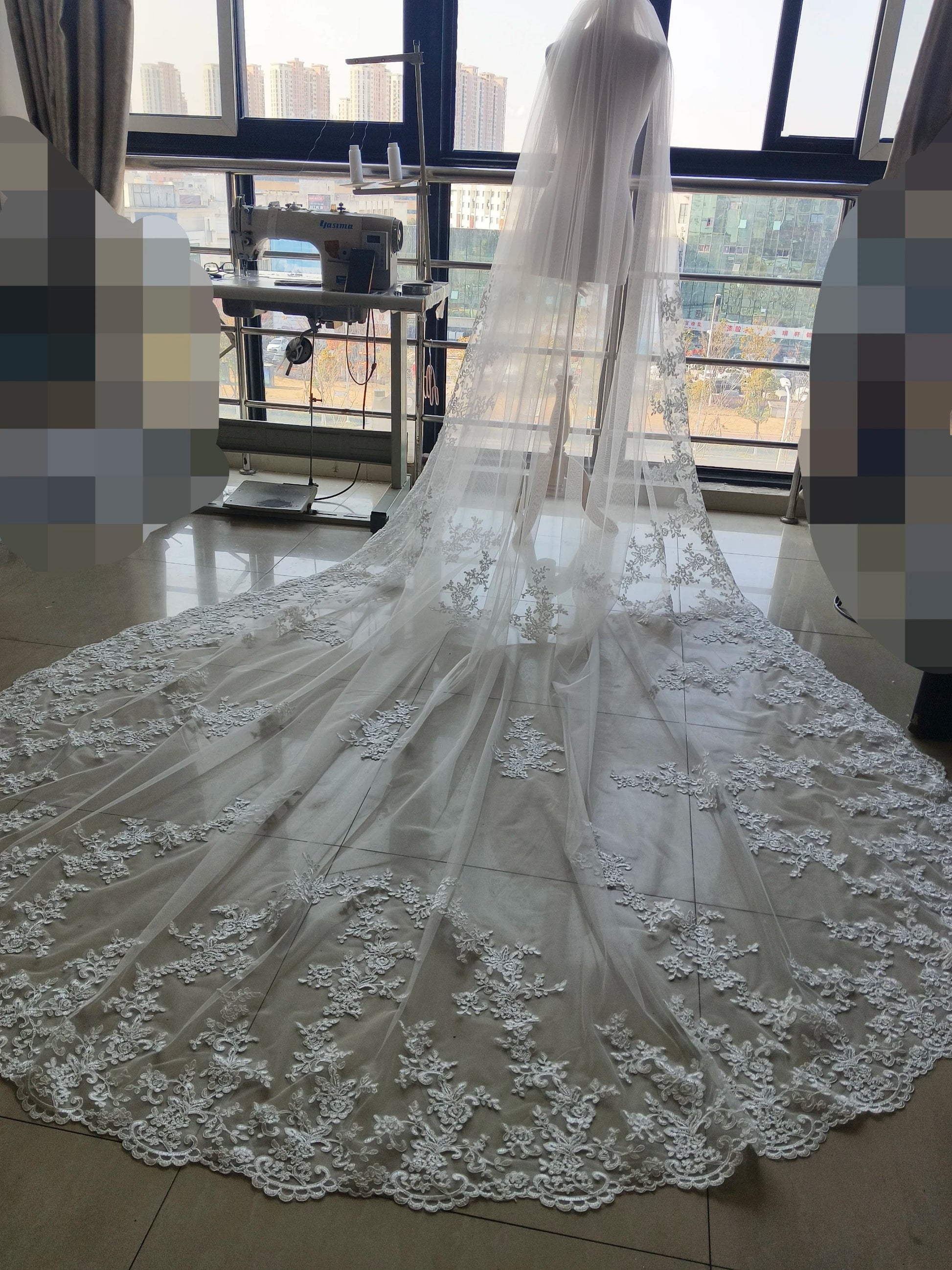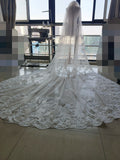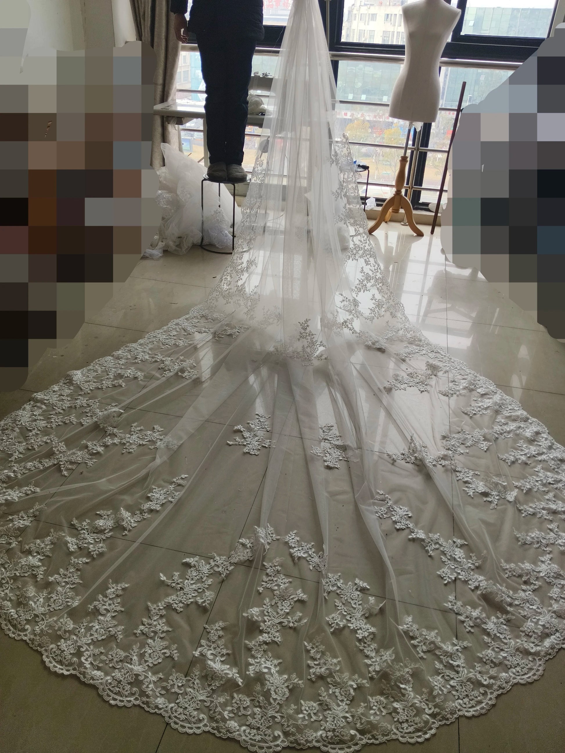 White Ivory 3m 4m 5m One Layer Wedding Veil With Comb Lace Edge Bridal Veils Appliqued Cathedral Wedding Accessorie Veu Velo