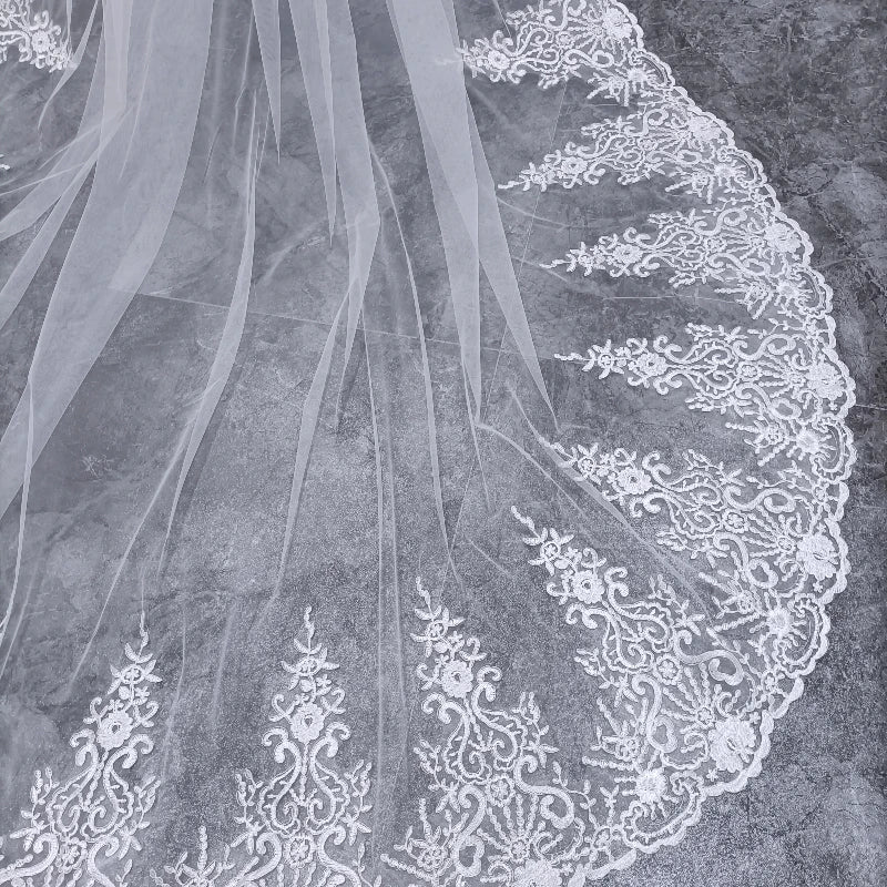 White Ivory Cathedral Bridal Lace Veil Wedding Accessories Width 300cm