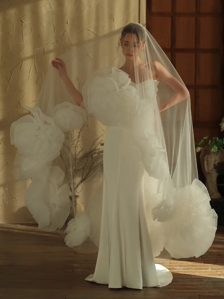 White Long Bridal Veil Flower Lace Wedding Veils For Evening Party Dress Women Girl Hair Accessories Brides Jewelry