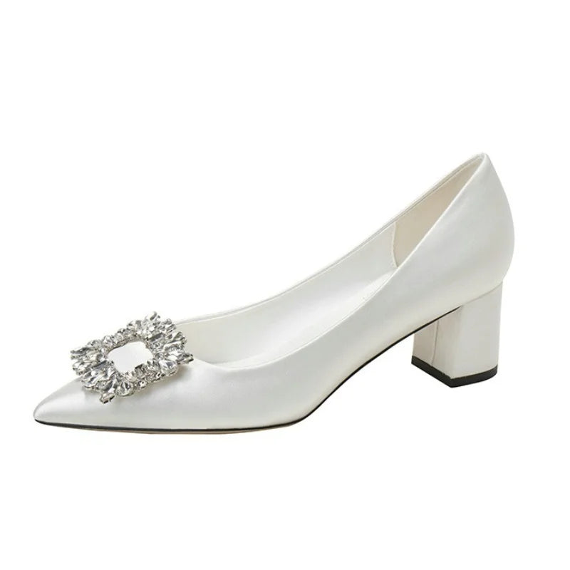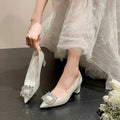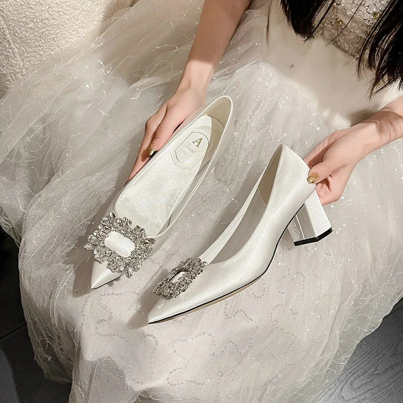 White Thick Heels Wedding Shoes 2025 Wedding Bridal Shoes Diamond Buckle Shoes Pregnant Women Pumps