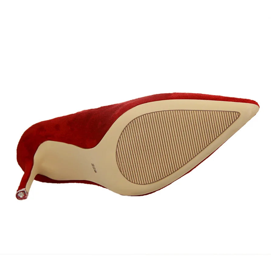 Women 9cm High Heels Yellow Burgundy Pumps Plus Size Stripper Suede Escarpins Lady Wedding Bridal Scarpins Green Blue Prom Shoes