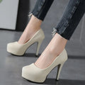 Women's Professional Work Shoes High Heels 12cm Waterproof Platform Thin Heel Single Shoes Comfortable round Toe Polyurethane