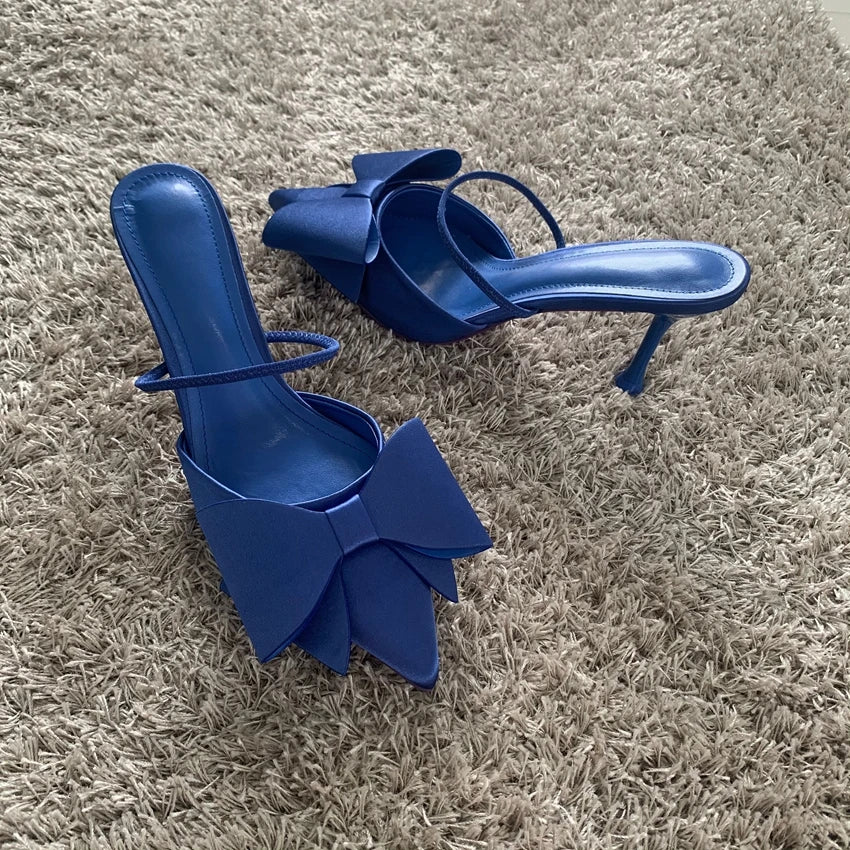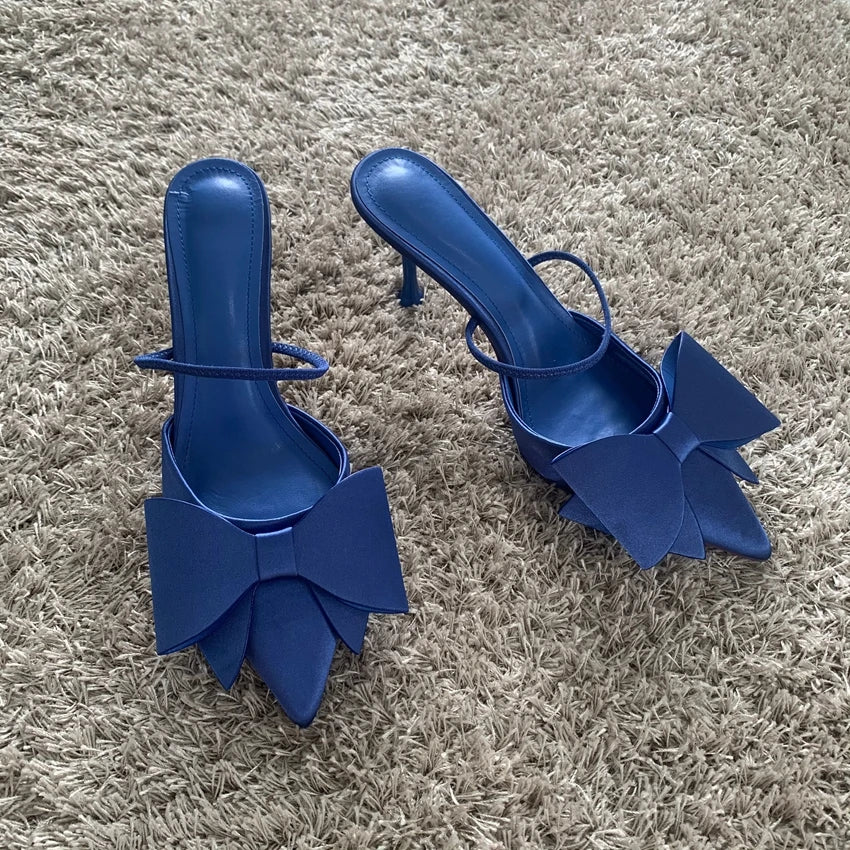 Women's Shoes 2024 New Fashion Bow Slingback High Heels Sexy Dress Stiletto Heel Pointed Toe Women High Heel Sandals